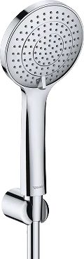 Dusche: Handbrause Duravit mit 3 Strahlarten, Oberfläche Chrom mit passender Duschstange.