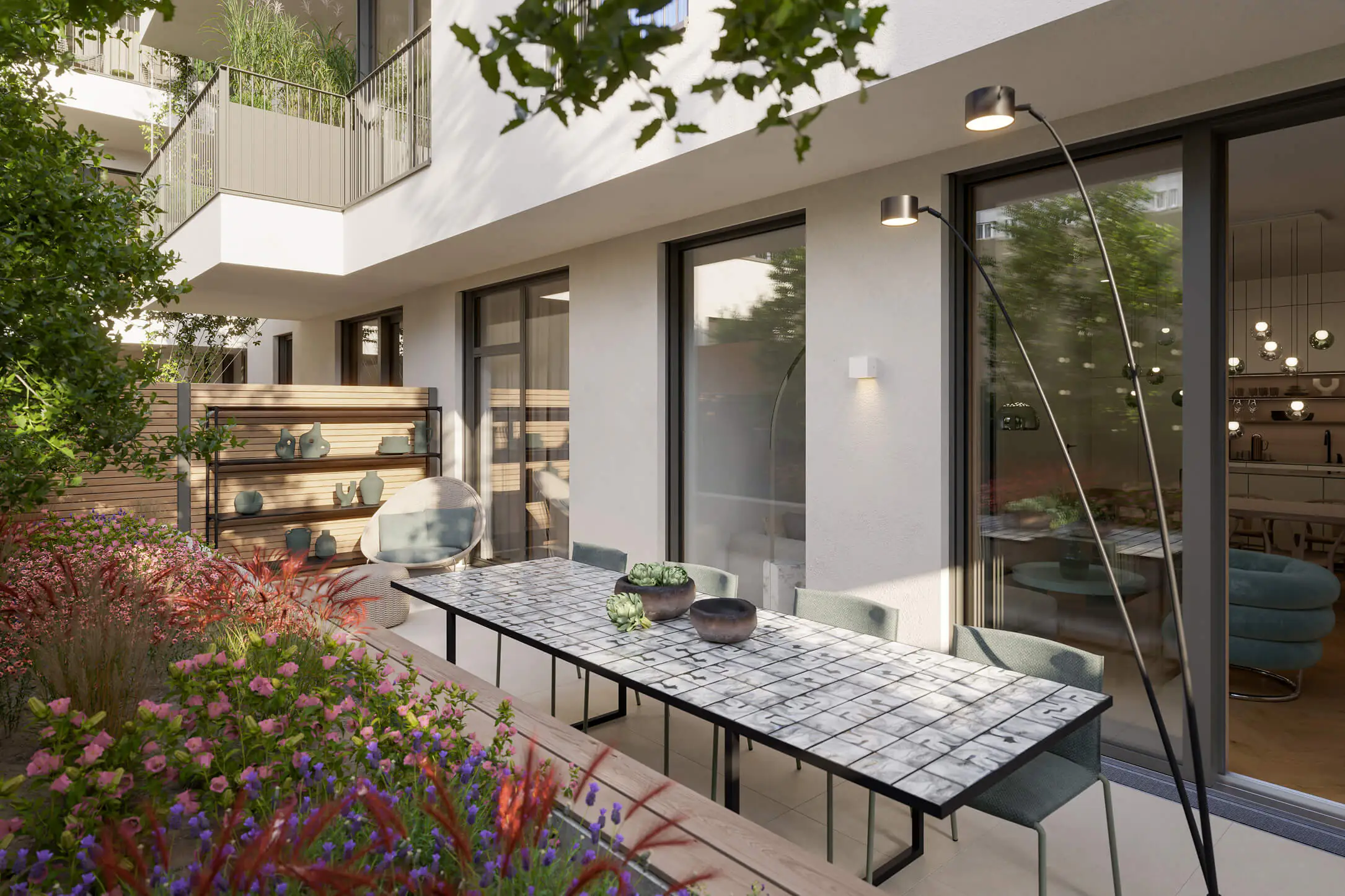 Die Sanitäreinrichtung umfasst Waschtische der Serie Villeroy & Boch Finion in den Größen 100 × 47 cm, 60 × 47 cm sowie ein Handwaschbecken 43 × 39 cm, jeweils mit Überlauf und aus hochwertiger Sanitärkeramik.